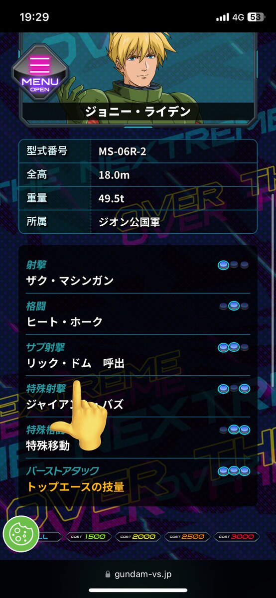 ヴィンゲル特格の特殊移動は弾数制限無いらしいけどどうせオバヒの時は使えないんでしょ?それだったらジョニザクはまだ2回だけだけどオバヒで特格使えるから差別化できてるわね
