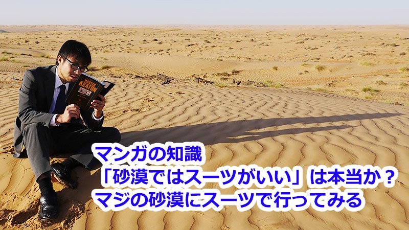 マンガ「マスターキートン」に「砂漠ではスーツがいい」と書いてあります。ネットでも有名なサバイバル知識です。そこで、それが本当か、スーツで本気の砂漠に行ってきました! 砂漠の温度は50度ですが、スーツすごすぎ! srdk.rakuten.jp/entry/2017/01/…