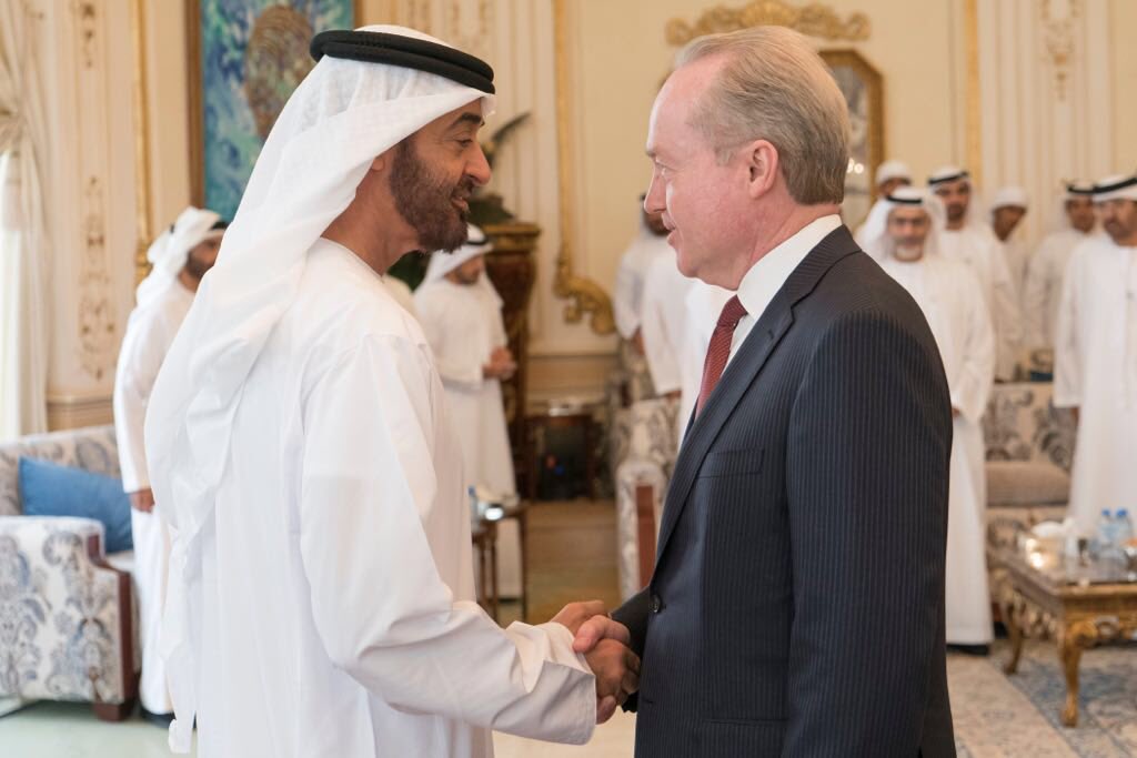 محمد بن زايد يطمئن على صحة صالح أحمد أشخر الظاهري خلال زيارته لمنزله بأبوظبي.