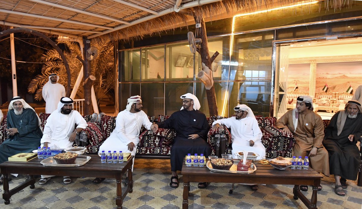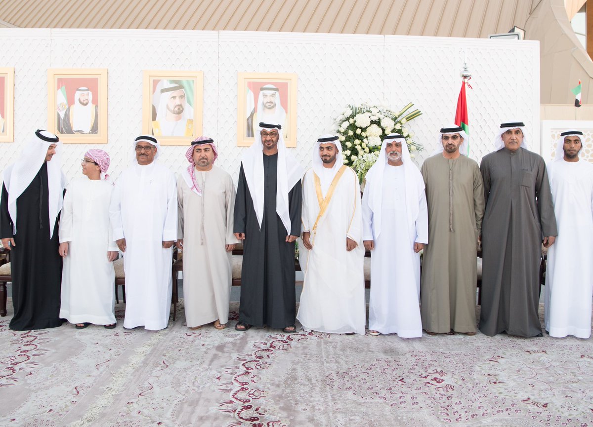 Mohamed bin Zayed attends reception hosted by Mohammed Khalfan Al Mazrouei for the wedding of his son Khalfan and daughter of Murshed Saleh Al Rumaithi at Armed Forces Officers Club