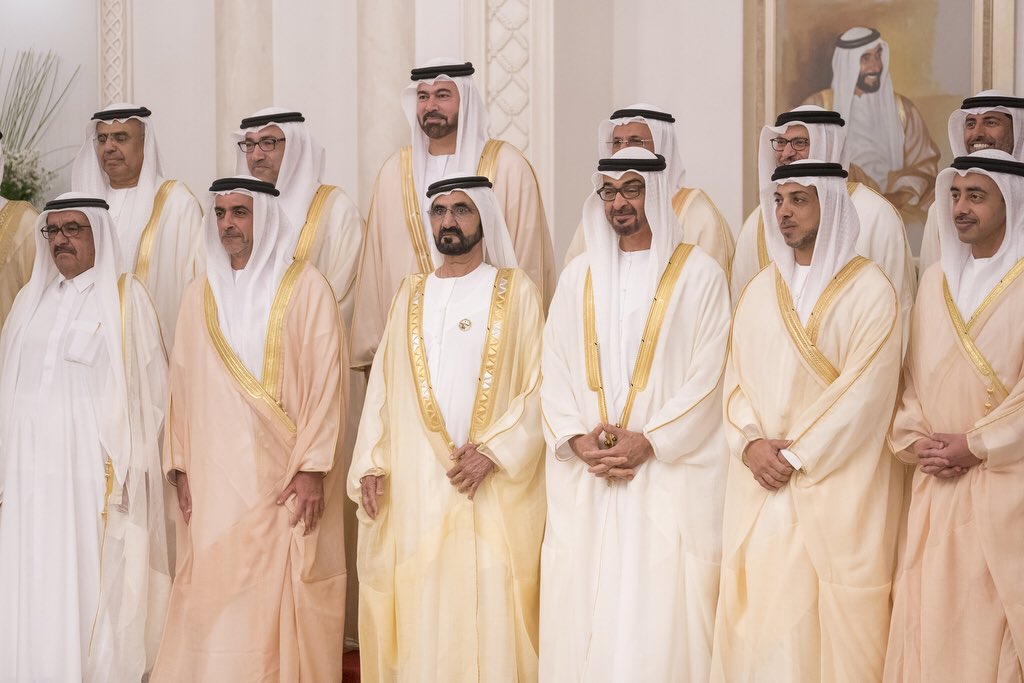 Mohamed bin Rashid & Mohamed bin Zayed witness the swear in ceremony of the new UAE government ministers at Al Mushrif Palace in Abu Dhabi.