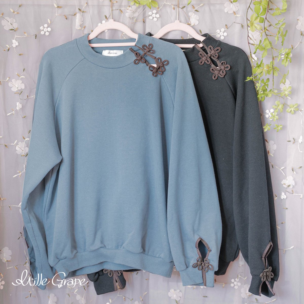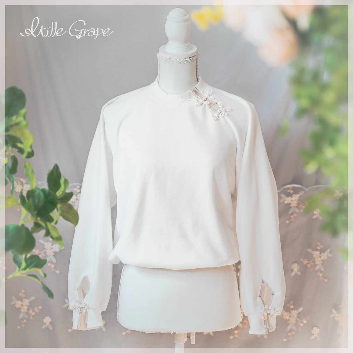 花模様のようなチャイナボタンをあしらった春らしいトレーナーです❀