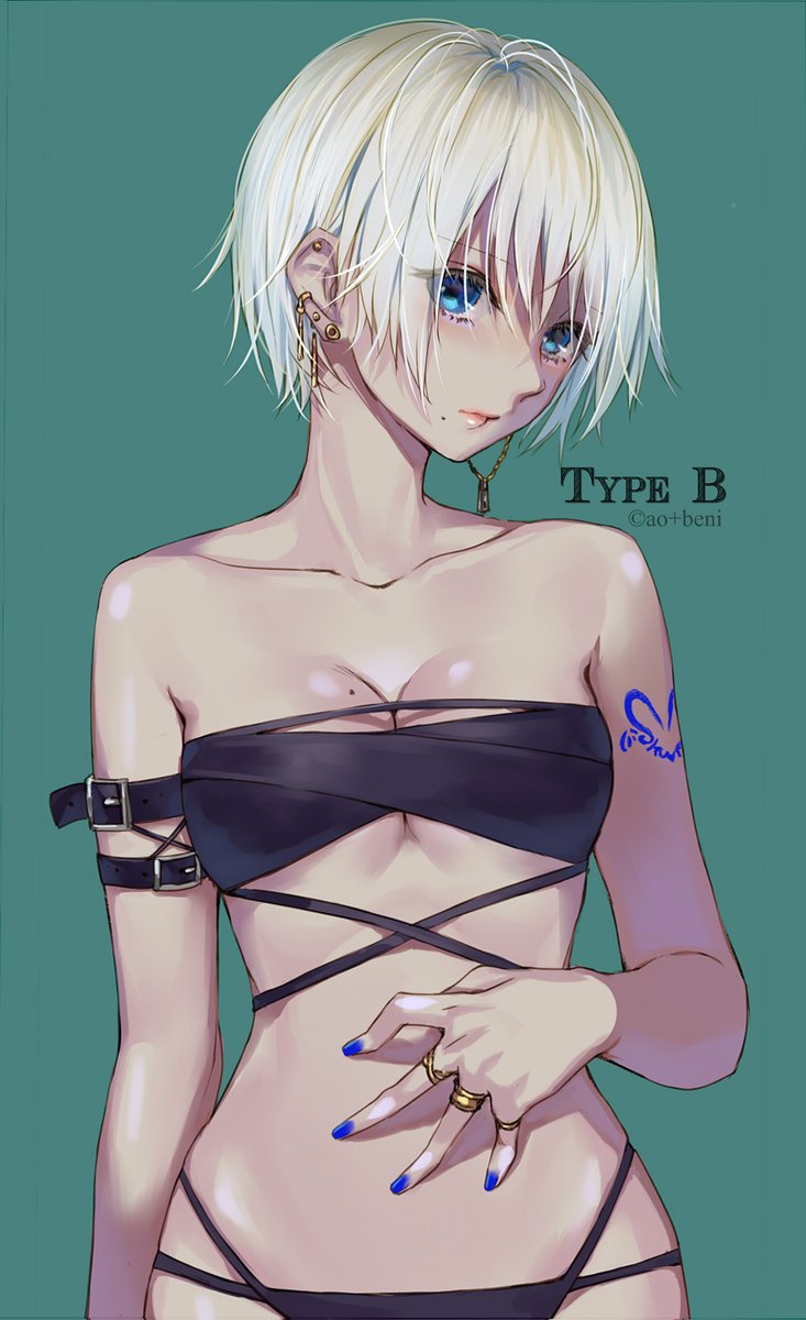 肌の色、色合い、髪型、水着、ほくろの位置等