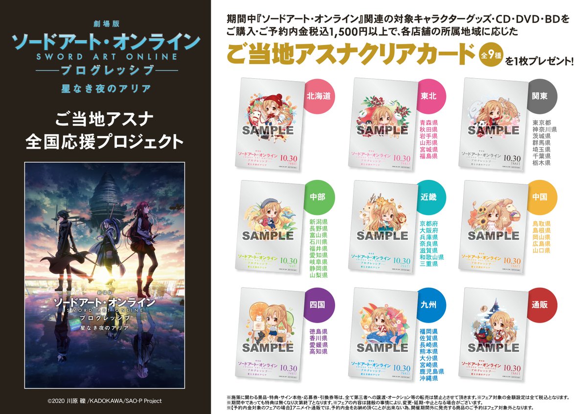 10/15(金)より開始予定の「ご当地アスナ 全国応援プロジェクト」に合わせ、アニメイト一部店舗にて期間限定で『劇場前売”剣”』を復刻販売いたします!