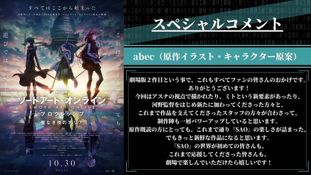 「劇場版 #ソードアート・オンライン -プログレッシブ- 星なき夜のアリア」公開記念!