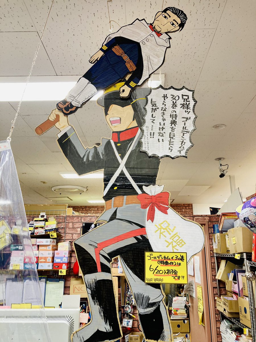 #ゴールデンカムイ 30巻入荷しました!とツイートする前からめちゃくちゃ売れています!早くに売り切れたらごめんなさい😭💦特典は30巻及び既刊におつけしています!売場も気合の最終決戦仕様で皆様のご来店をお待ちしています!ちなみに勇作さんはレジ前にいます!(意外に見落とされがち…😂)