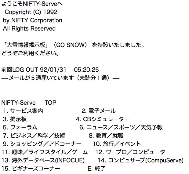 30年前だと一般の人はニフティサーブからコンプサーブを覗ける程度でしたね。