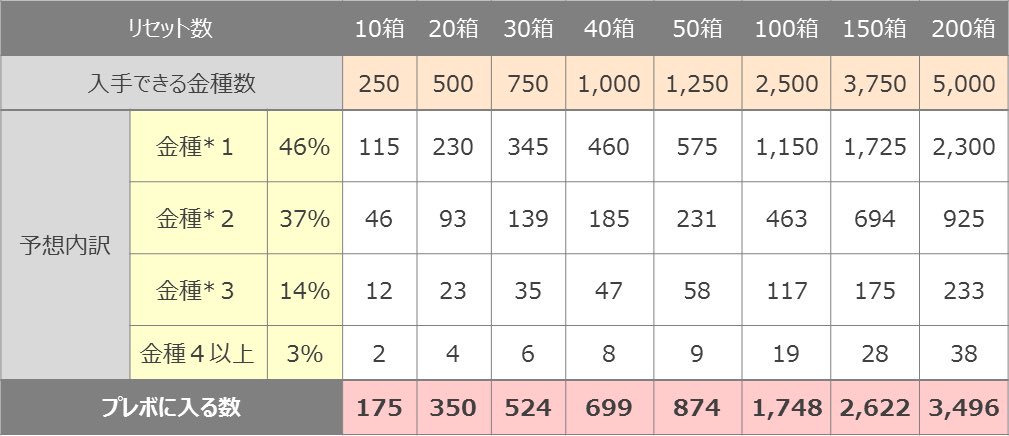 fgoメンテで暇だから、箱ガチャで金種火がプレゼントボックスをどのくらい圧迫するか表にしてチェックする。 あくまで経験からの予想。 適当な個人用メモ。