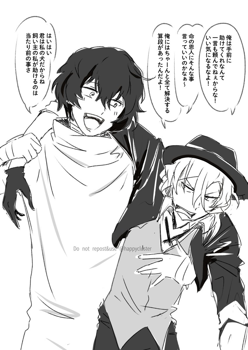 🎩「いつまでそうやってるつもりだったんだ?」 🤕「ちゅうやが来るまで」 🎩「とっとと帰ぇるぞ」