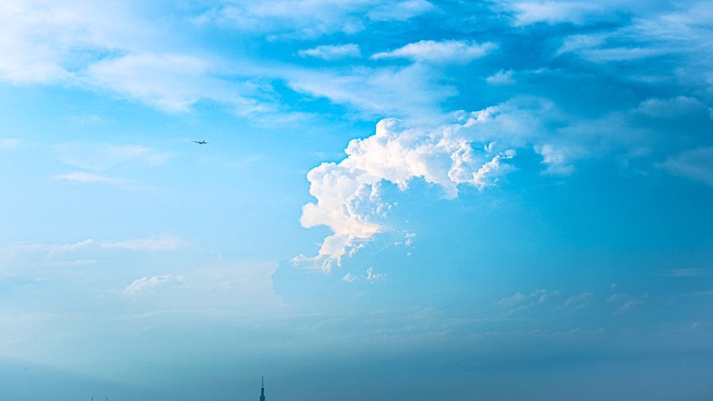 絵画のような、夏雲と飛行機。