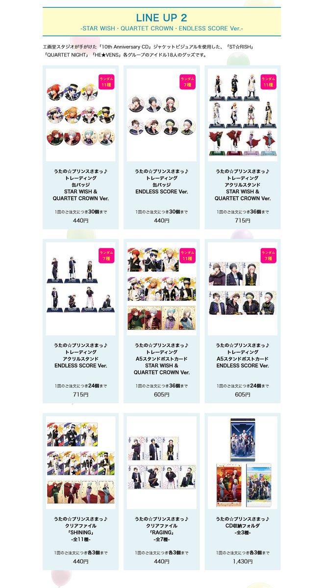 「UTA☆PRI EXPO Ver.、10th Anniversary CDビジュアル、10th Anniversary Book、マスコットキャラクターズ」