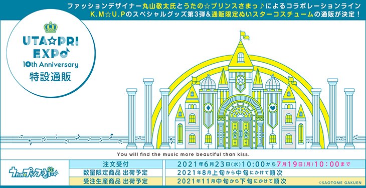 UTA☆PRI EXPOで販売された、丸山敬太氏と「うたの☆プリンスさまっ♪」のコラボ「K.M☆U.P」グッズの数量限定通販と、通販限定の「ぬいスターコスチューム」の受注生産が開始❗