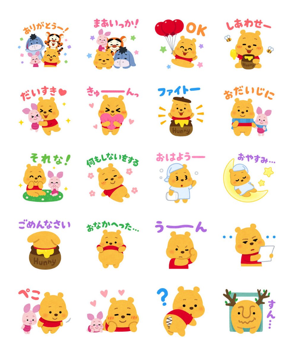 くまのプーさんのLINEスタンプが出ました。