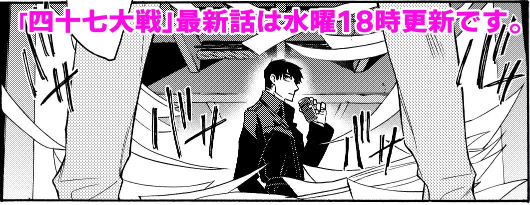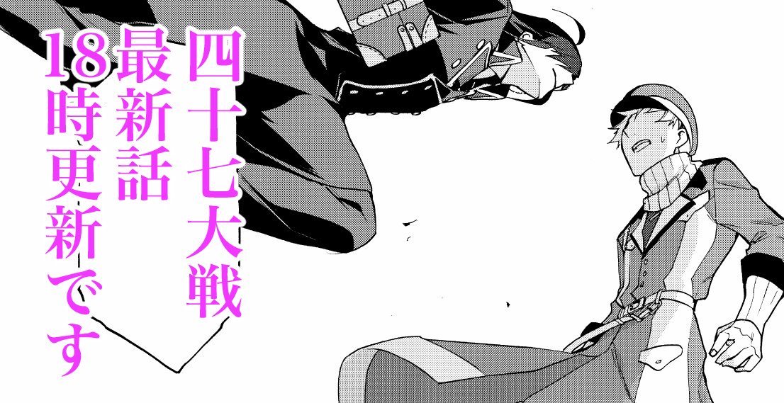 四十七大戦最新話更新されました!今回は単行本作業のため番外編です。何とは言いませんが全力で流行に乗りました。よろしくお願いします