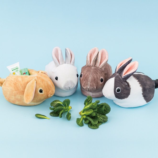 その大福のごとき魅惑のもっちり感で人気を博した子うさぎポーチに、4匹の新色ができました。使い勝手もバージョンアップ、と思いきや、やっぱり収納力は控えめなまま…😅さわり心地と見た目はばっちりです!