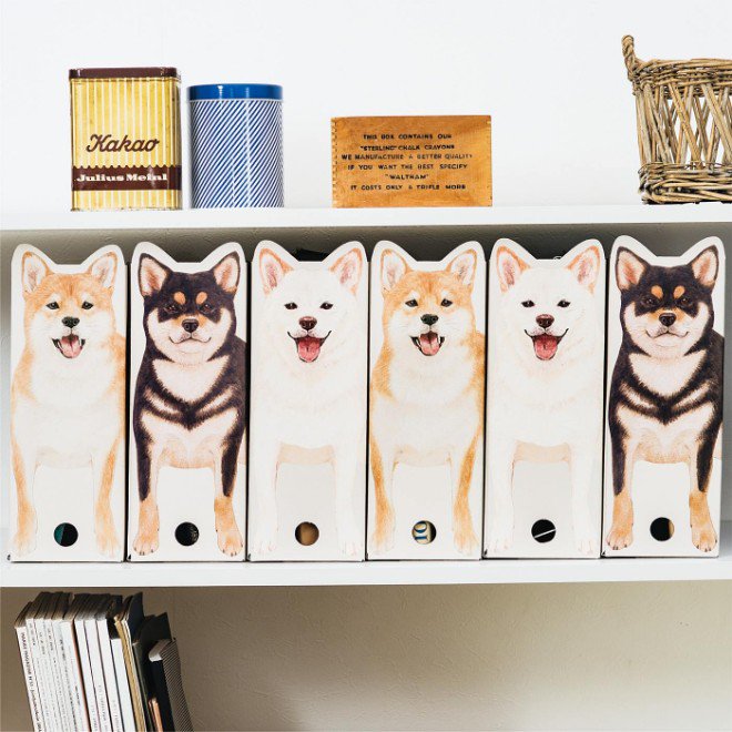 ついつい散らかっちゃう書類は、柴犬ファイルボックスにおまかせを。キリリとした表情の忠犬たちがデスクや棚のすっきり感を守ります。