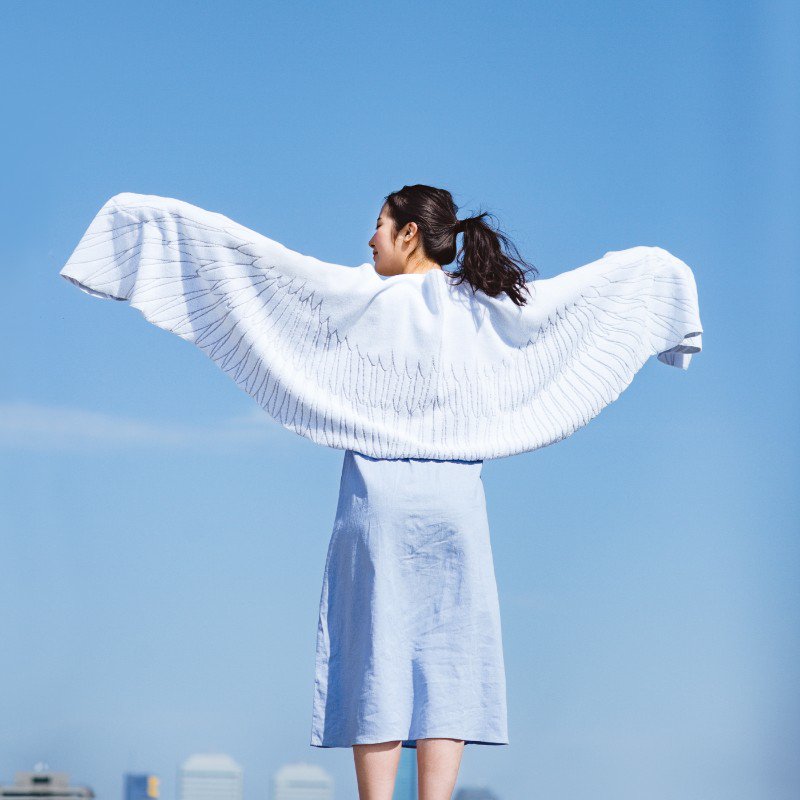 ただタオルを掛けているだけなのにすっごく解放的な気分になれる天使の羽タオル。内側には両手を入れられるポケット付き。バサバサ羽ばたいて遊んだり、そのまま髪を拭いても◎ジャカード織りで立体的に羽を表現しています。