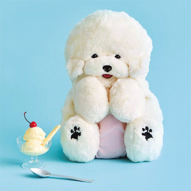 毛布やシーズンオフの衣類などを詰めるとクッションに変身!あまりにまるいルックスで人気急上昇中の犬、ビションフリーゼさんをモデルにしたクッションケースです。ふわもこボディーにギュッとするたび、心もまあるくなりそうだ。