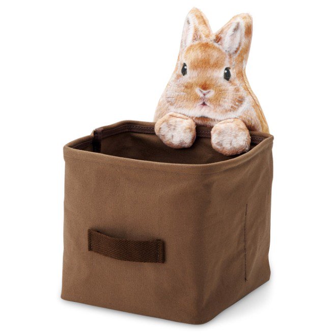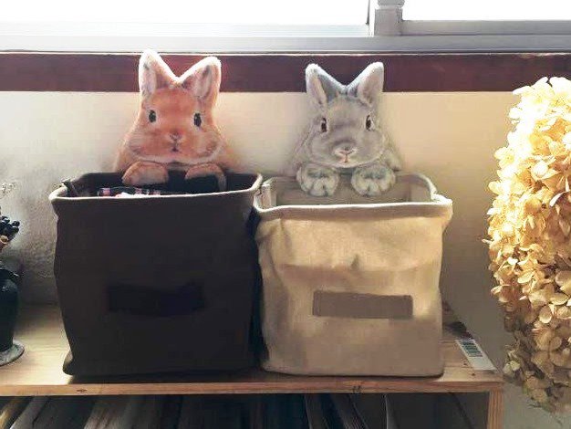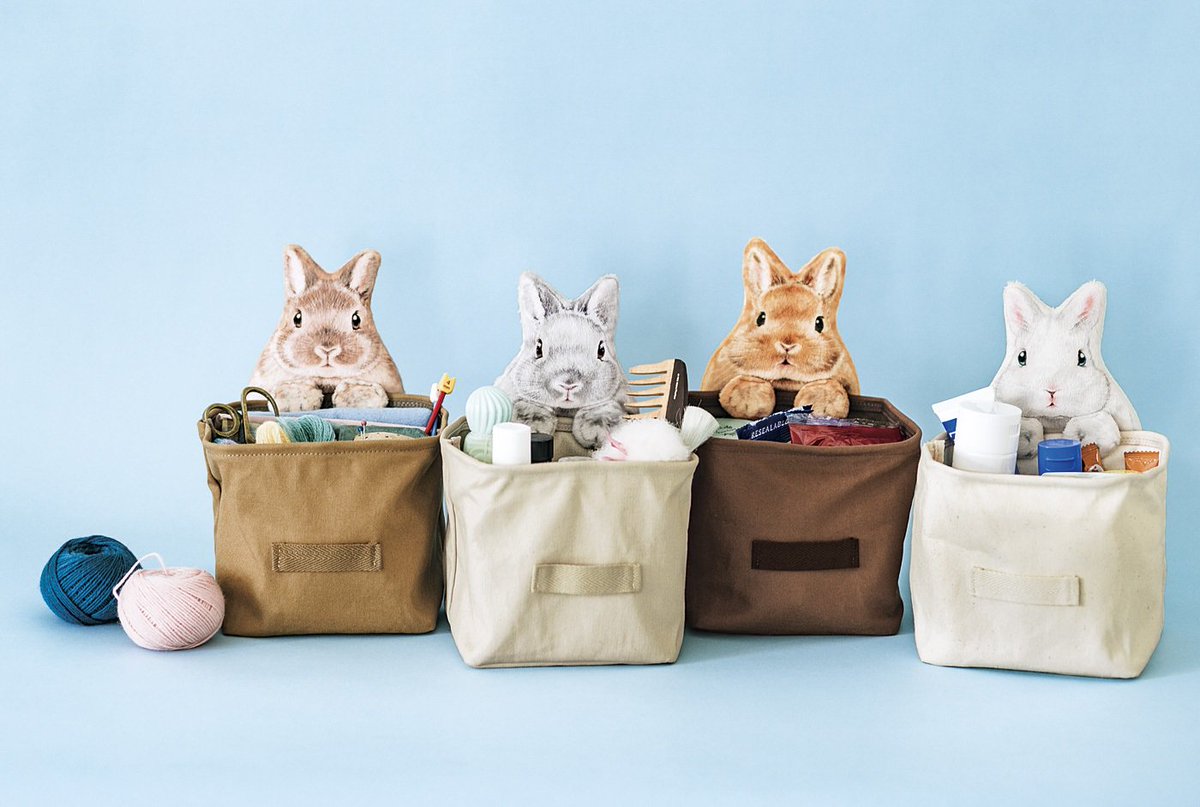 箱の中身に興味深々!なうさぎさんたちが、ひょこっとのぞき込む収納ケースができました。裏面のおしりにもご注目ください✨机の上の細々ものの一時置きとして、リモコンやDM類を入れるのにもオススメです♪