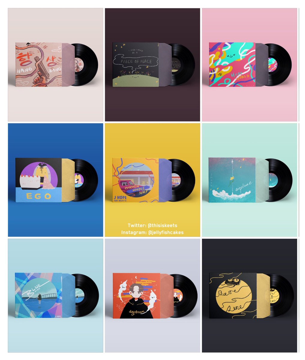 made vinyl designs inspired by hobi tracks & some little lockscreen styled ones that you’re welcome to use for your own screens! (here’s Intro: Boy Meets Evil & Ego)