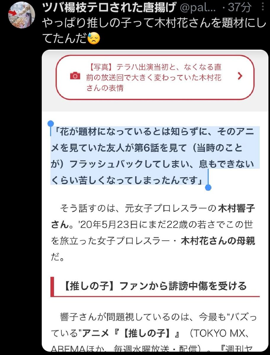 )滅茶苦茶すぎてもうね… 推しの子ファンでも木村響子の娘のファンでもないだろこれ