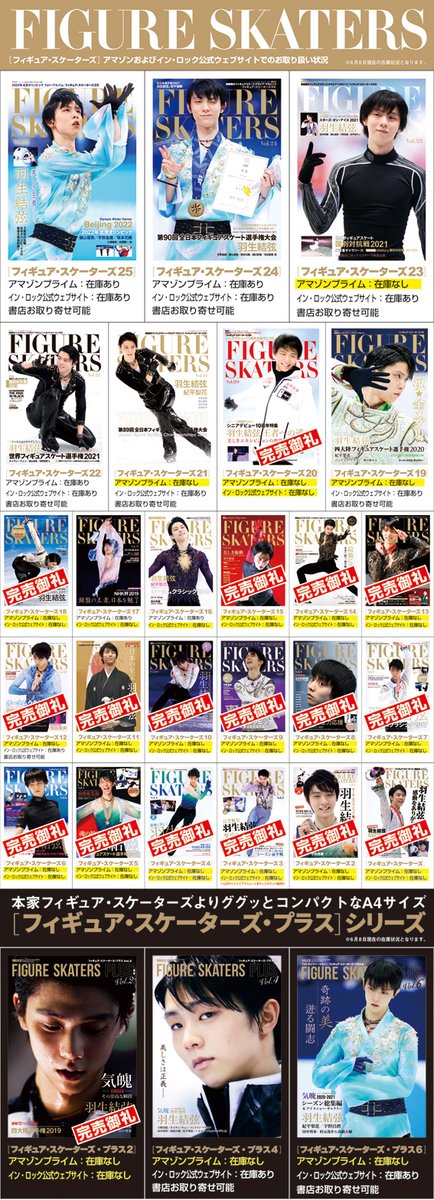 #羽生結弦 選手表紙のフィギュアスケーターズ、在庫状況をまとめました。在庫の動きが激しいです。ご参照ください。