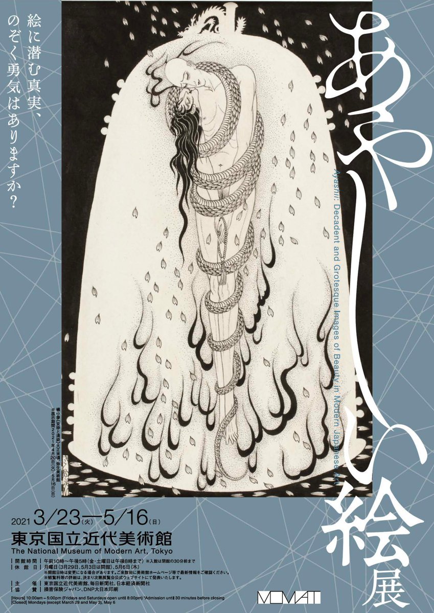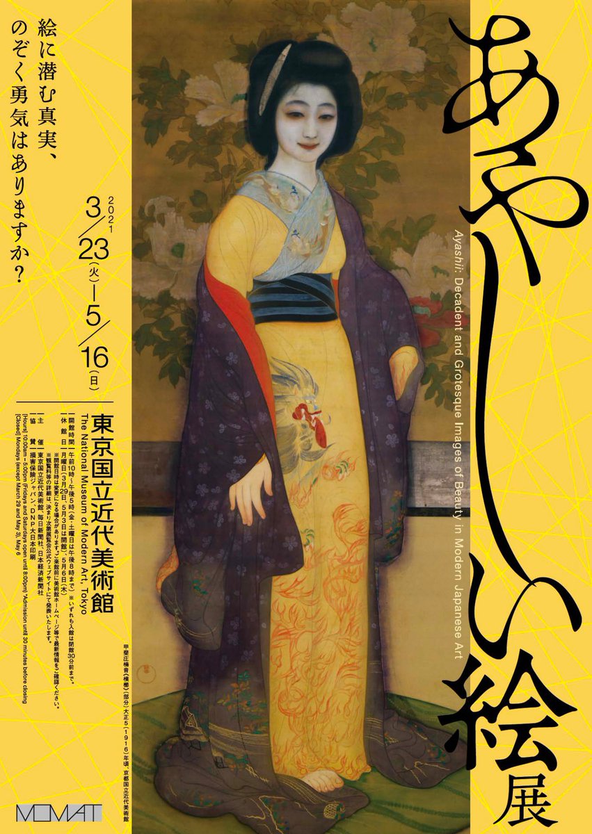 【重要なお知らせ】5月12日(水)より再開の予定でしたが、本日文化庁の方針が変更されたため、当面の間休館いたします。これに伴い「あやしい絵展」他開催中の展覧会は終了いたします。皆様には度重なる変更によりご迷惑をおかけしたことを心よりお詫び申し上げます。詳しくはmomat.go.jp/ge/topics/am20…