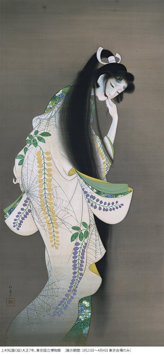 あやしい絵展(@ayashiie_2021)予約優先チケットの販売が開始しました。まずは3/29までの入館分です。この時期には、展示期間が4月4日までの鏑木清方《妖魚》や北野恒富《道行》、上村松園《焰》などが並びます。会いたければお早めに…。