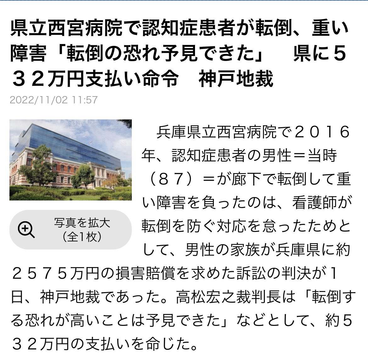 転倒→訴訟 支払命令