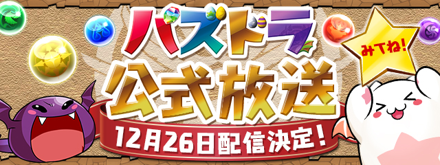「パズドラ公式放送」配信決定のおしらせです!放送は12/26(木)20:00から!お楽しみに!! #パズドラ