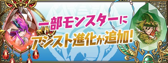「5700万DL達成記念!パワーアップアンケート」の内容を変更させていただき、「刻風の時女神・ヴェルダンディ」や「呪剣の溟手神・ネヴァン」など、25体のモンスターにアシスト進化が追加されます!