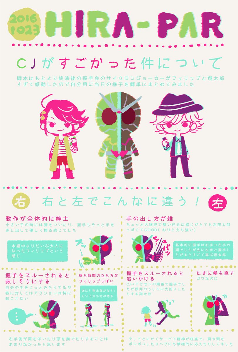 4/30よみランライダーショー どのライダーもみんなそれぞれ対応違ってステキだったんですがWの反応が嬉しかったので握手会の覚え書きをちょこっと!今日は天気もよくてアクターさんも大変だったかと思いますが、素敵なショーと握手会をありがとうございました。 #よみうりランド