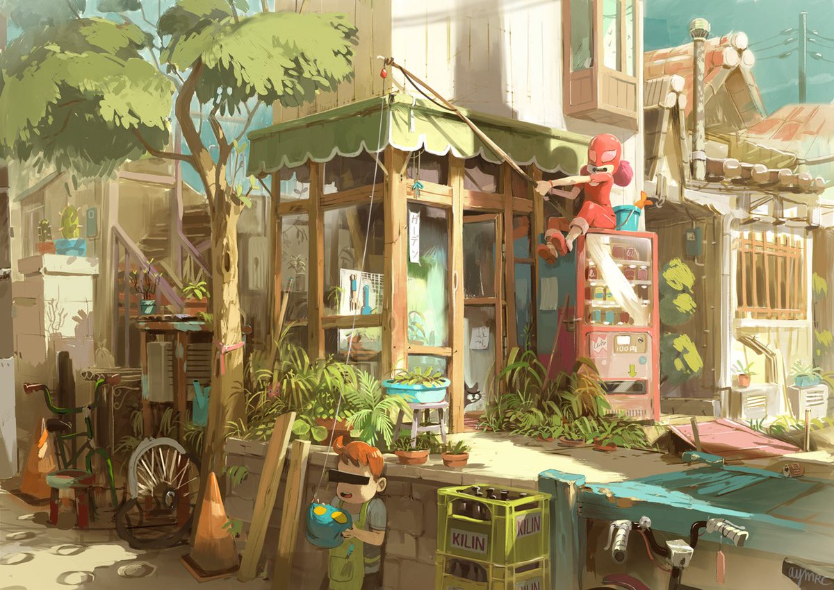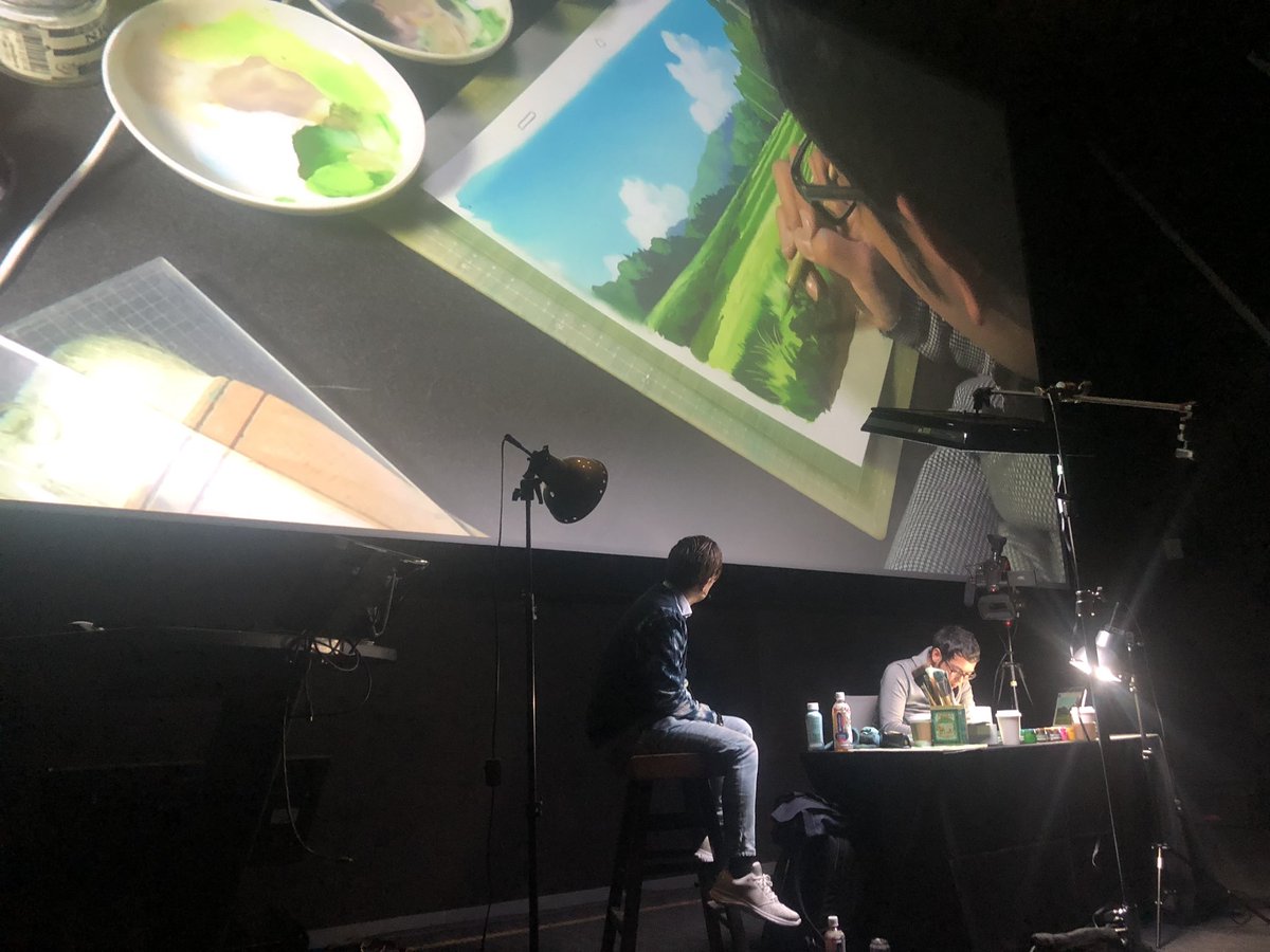Yoichi Nishikawa did a 3 hours live demo at Riot Games about his process of making backgrounds at Studio Ghibli. I was stunned when he handed me the final painting as a gift. @YohIchi_N Thank you so much for sharing some of your knowledge, and the beautiful gift. Truly inspiring.