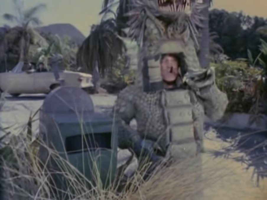 『特攻野郎Aチーム』パイロット版でハンニバル(ジョージ・ペパード)が着用した怪獣はニール氏がこのために制作したオリジナル。この高完成度な怪獣の登場がほんの一瞬だけとはもったいない話だが、制作側もそう考えたか本シリーズではOPの人物紹介で毎回放映されることに。