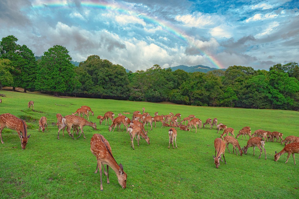 奈良公園に虹がかかった日
