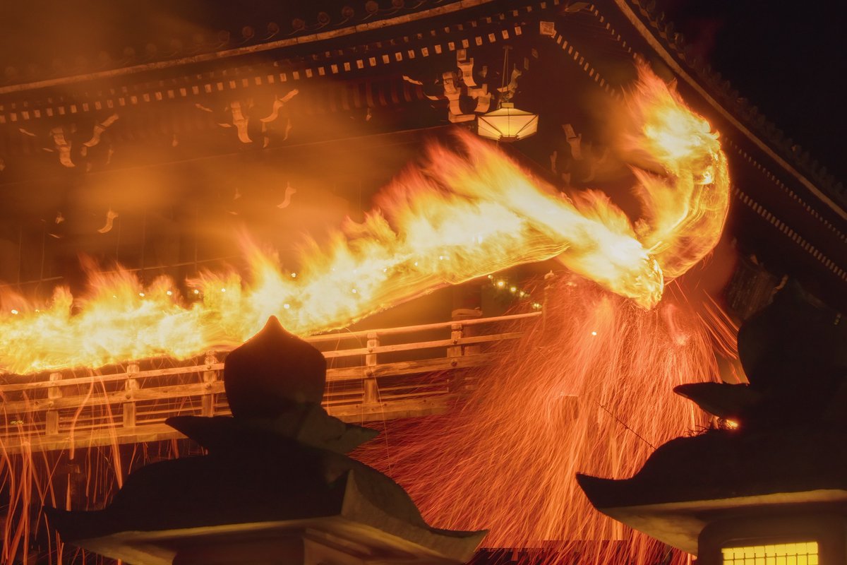お水取り お松明の炎が龍みたい! 手持ち撮影です。