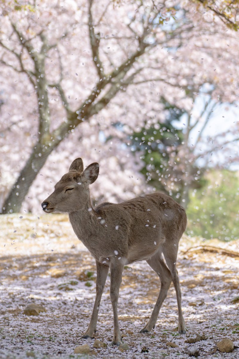 ひらひらと桜散る春の奈良公園🌸