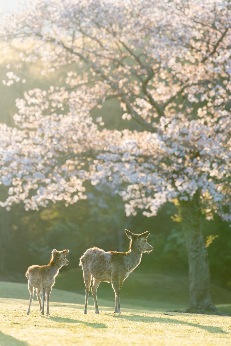 桜と親子鹿🌸