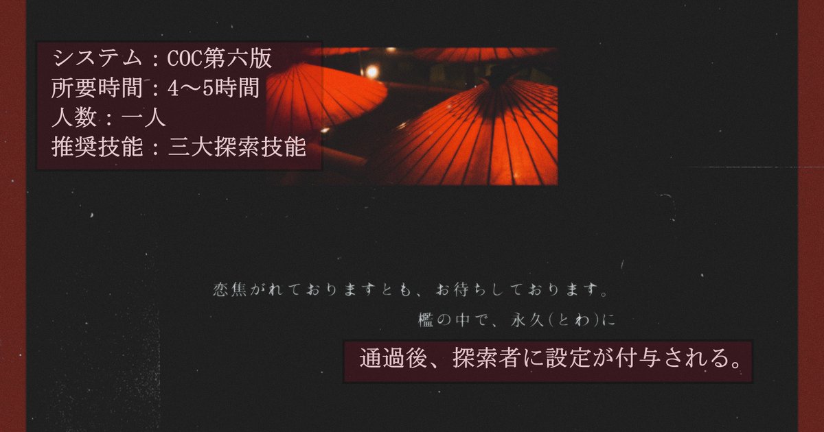 #CoCシナリオ #クトゥルフ神話TRPG #TRPG twitter.com/kairi_1717/sta…