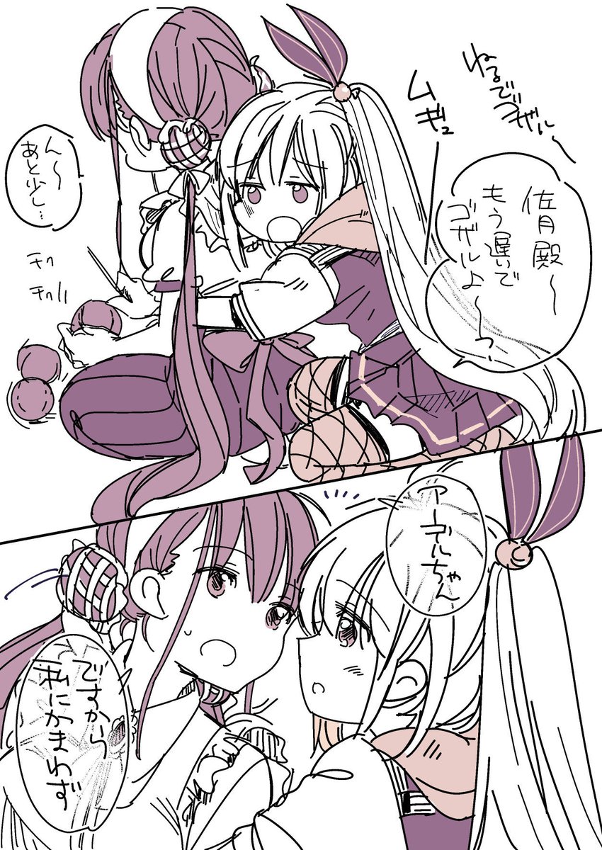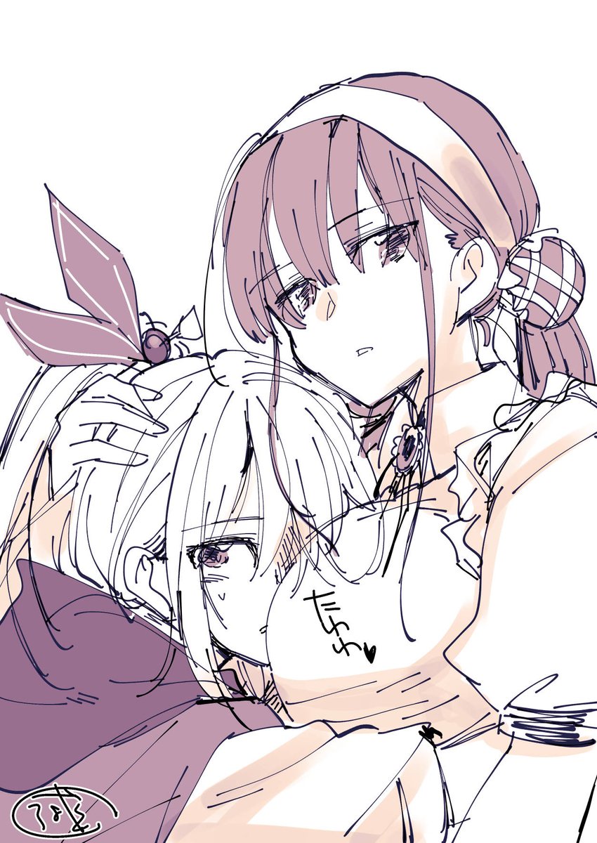 マリーにアーさん膝枕して欲しい欲望😡😡😡アーさんが目を閉じてる時はめっちゃ優しい顔して見てるんだけど、目あけたらいつものマリーでいてほしいんだよな佐月マリ😡😡 #ヘブバンファンアート