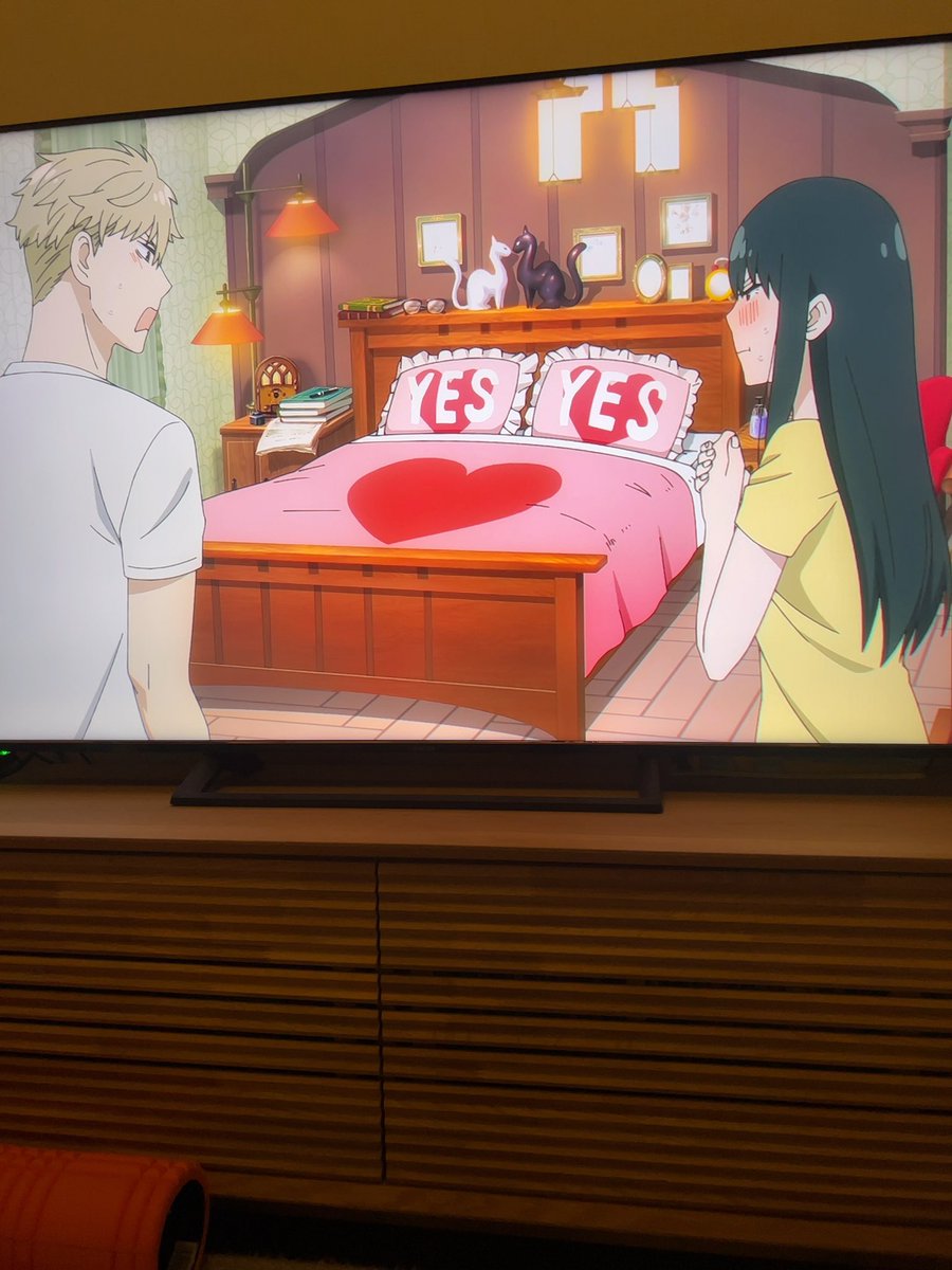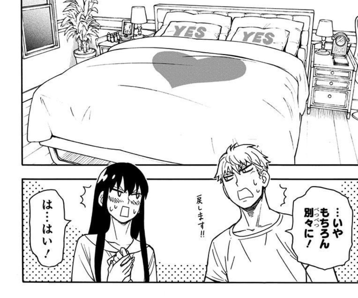 この、安心して、さぁ寝るかってなって「仲睦まじい夫婦セット」見直して照れるロイドとヨル、2人とも可愛い。