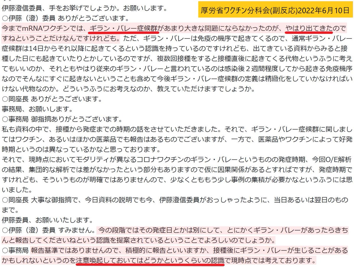 @takavet1 心筋炎、感染と接種による詐欺比較、パンフが検討された2021年10月15日のワクチン分科会で、すでに伊藤清美さんが指摘しています。