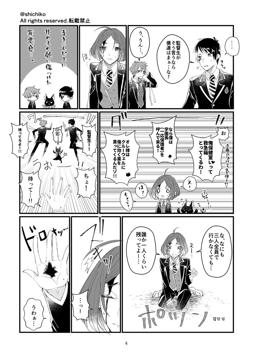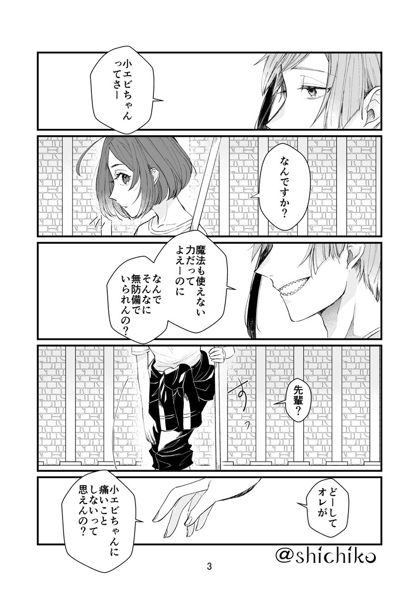 『永遠のウツボと泡沫の小エビ』フロ監♀(顔有・喋る)1/5 血なんて見慣れてるけど大事な子が怪我したら自分でも吃驚するくらい 動揺したウツボ(17歳) ※シリーズ物&前回の話とタイトルが似ていますが連続性はありません これ単体で読んで頂いて大丈夫です。