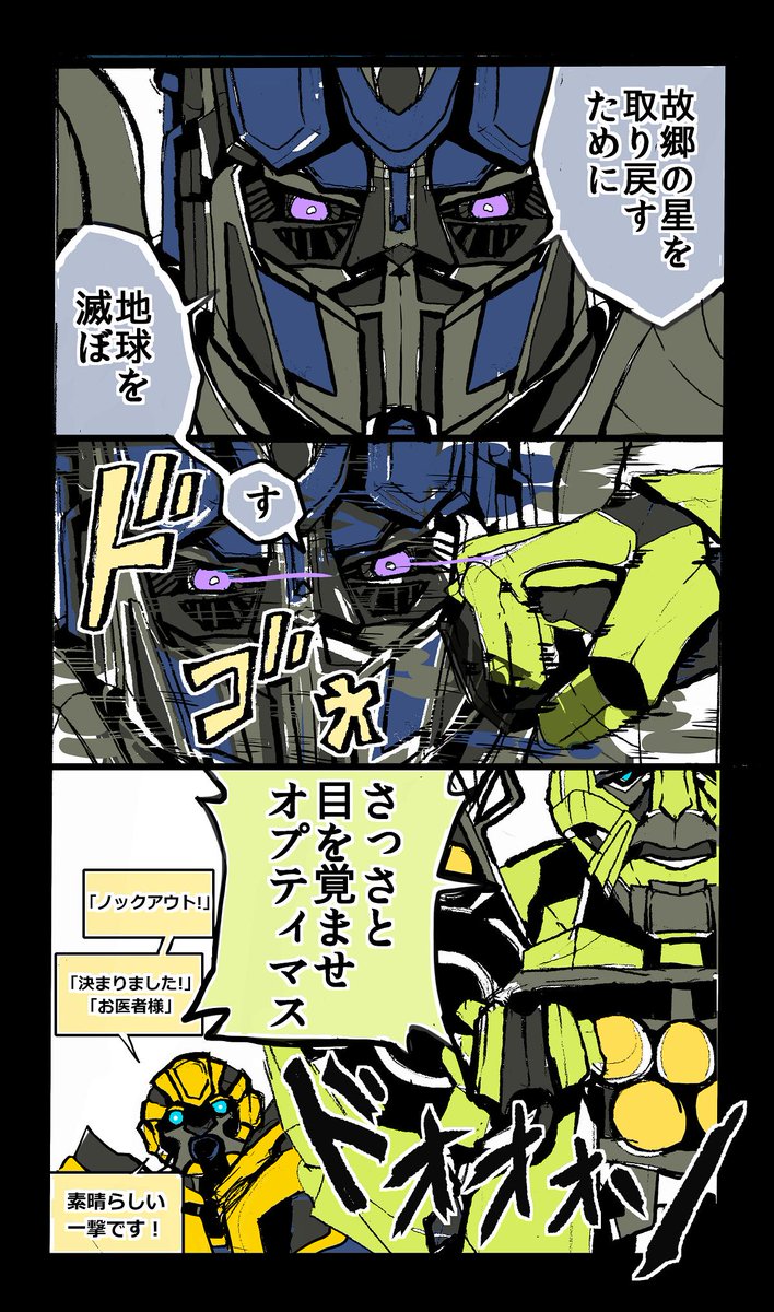 去年に描いたタイバニとMARVELとトランスフォーマーのクロスオーバー事故漫画です。