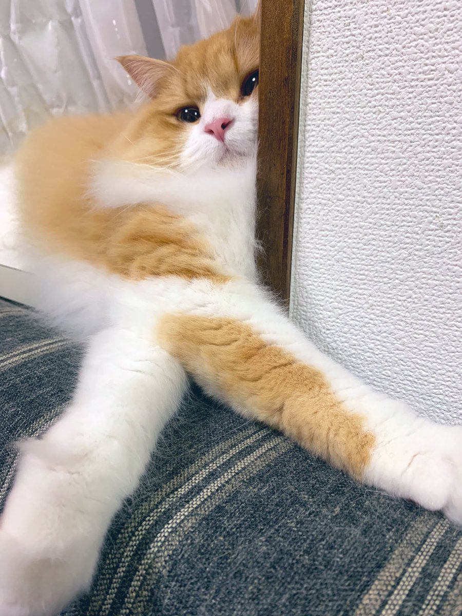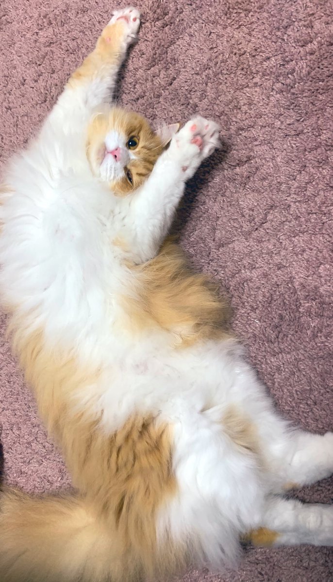 夢中で毛布をふみふみしていたところ、撮影されているのに気づいた猫です