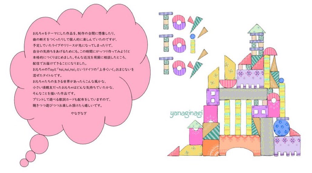昨日さらりと書いてしまったので改めて…セルフプロデュース作品「Toy,Toi,Toy」を配信でリリースしました!おもちゃとドイツ語のおまじないを掛け合わせたタイトルです。歌詞カードはどなたでもご覧頂け、印刷してペーパークラフトとして遊べます。