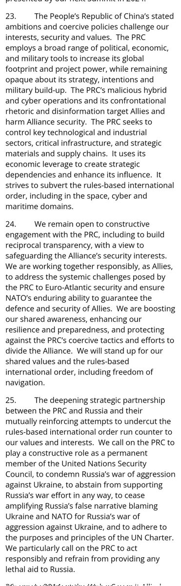 中ロ共同声明、グーグル翻訳でしか読めないのだが、NATO拡大反対が姿を消していてびっくり。一方中国側の言い分は去年の2月のまんまなので、明らかに力関係の変化があった模様。経済・金融・文化・技術開発まで何でも中国の言うことききますってロシアが言ってる印象。