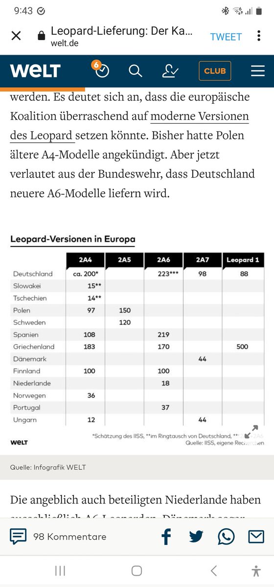 今のところWeltのガイガーさん記事が最も良い。まず、ばらばらのレオパルトでなく最新鋭の2A6型をそろえるために欧州内で調整、同時に米が同等のコミットをしなければだめだと米に圧力をかけ続け、NATO全体として米こみでかなりの数(100両規模?)を水曜日に一斉発表という準備がここ数日で整ったと twitter.com/geig_erzaehler…