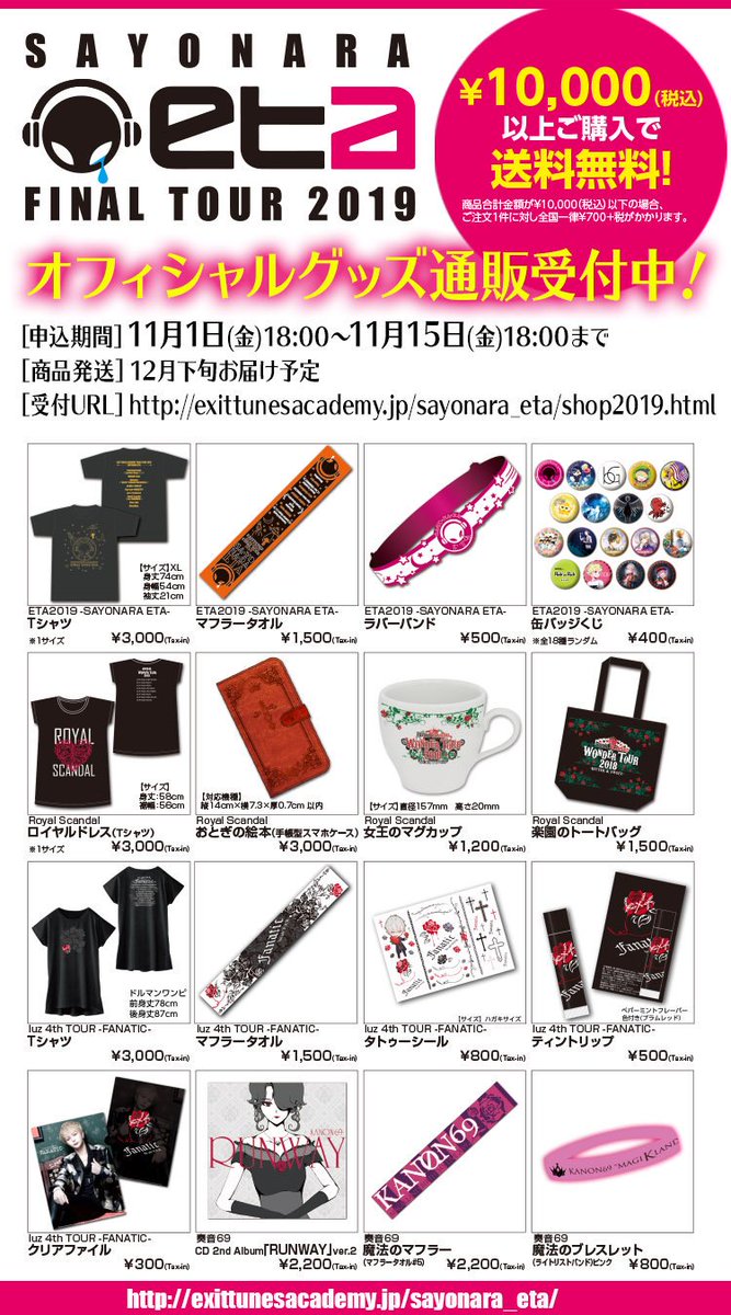 【ETA FINAL TOUR 2019 -SAYONARA ETA-グッズ通販受付開始!】
