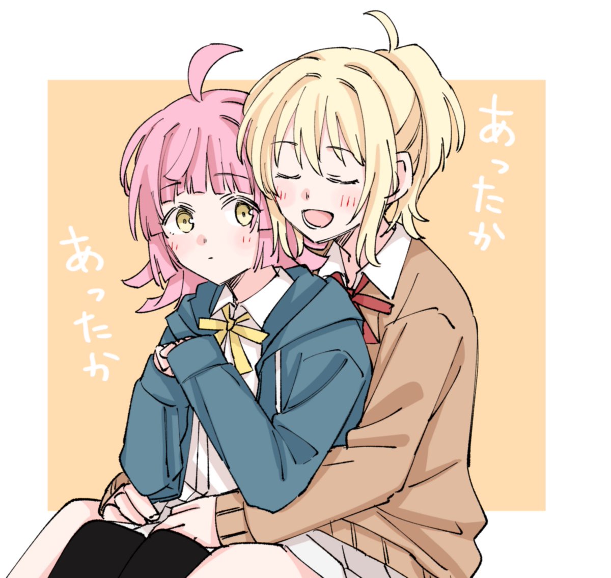 これも肌寒くなってきたので愛さんで暖を取るリナリのイラスト…(ごめんなさい)